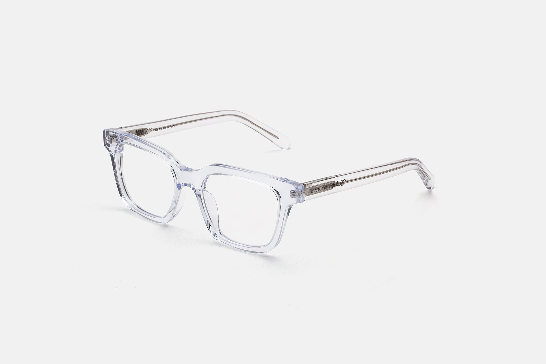 MM6 Maison Margiela expands into eyewear with its first dedicated collection. Margiela’s collections naturally tend to de-contextualize and de-construct, while still maintaining the specific shape and functionality of the product itself. Instead of following trends, the Maison's style prefers to draw on great classics and rework them with a contemporary, if not directly futuristic touch.