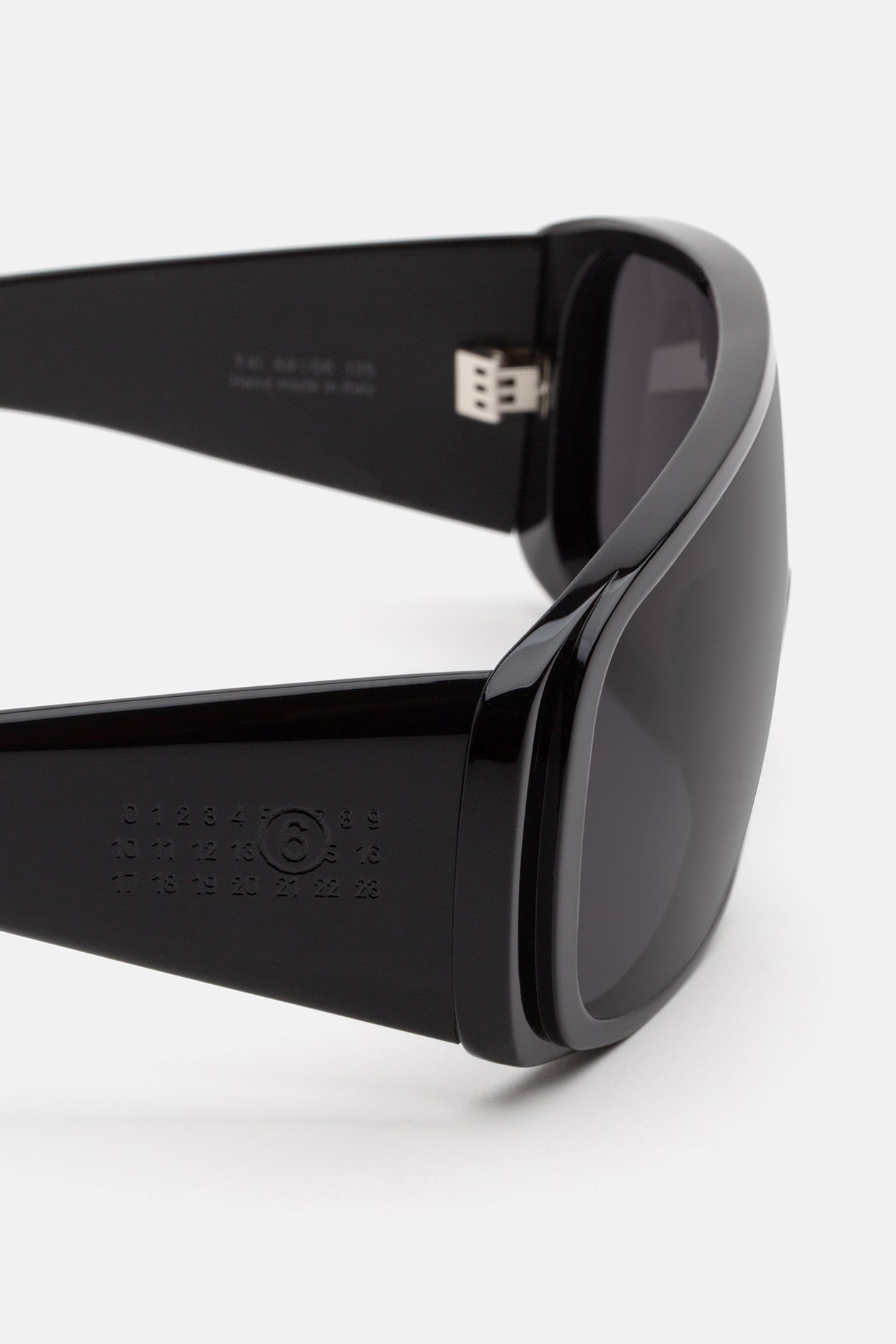 A bold wraparound silhouette defines the MM6 mask sunglasses, in thick acetate with a mirrored tone-on-tone base 4 lens.