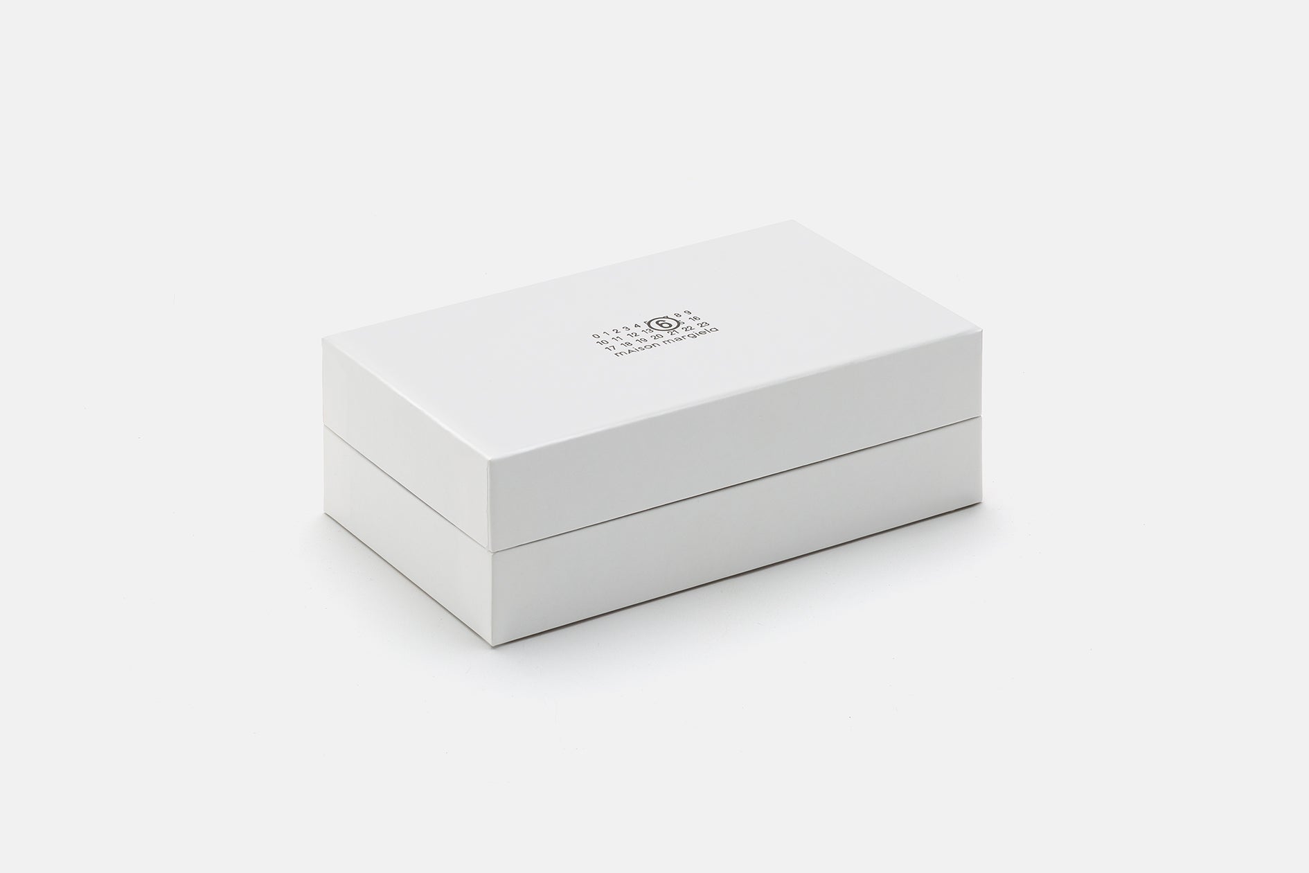 A bold wraparound silhouette defines the MM6 mask sunglasses, in thick acetate with a mirrored tone-on-tone base 4 lens.