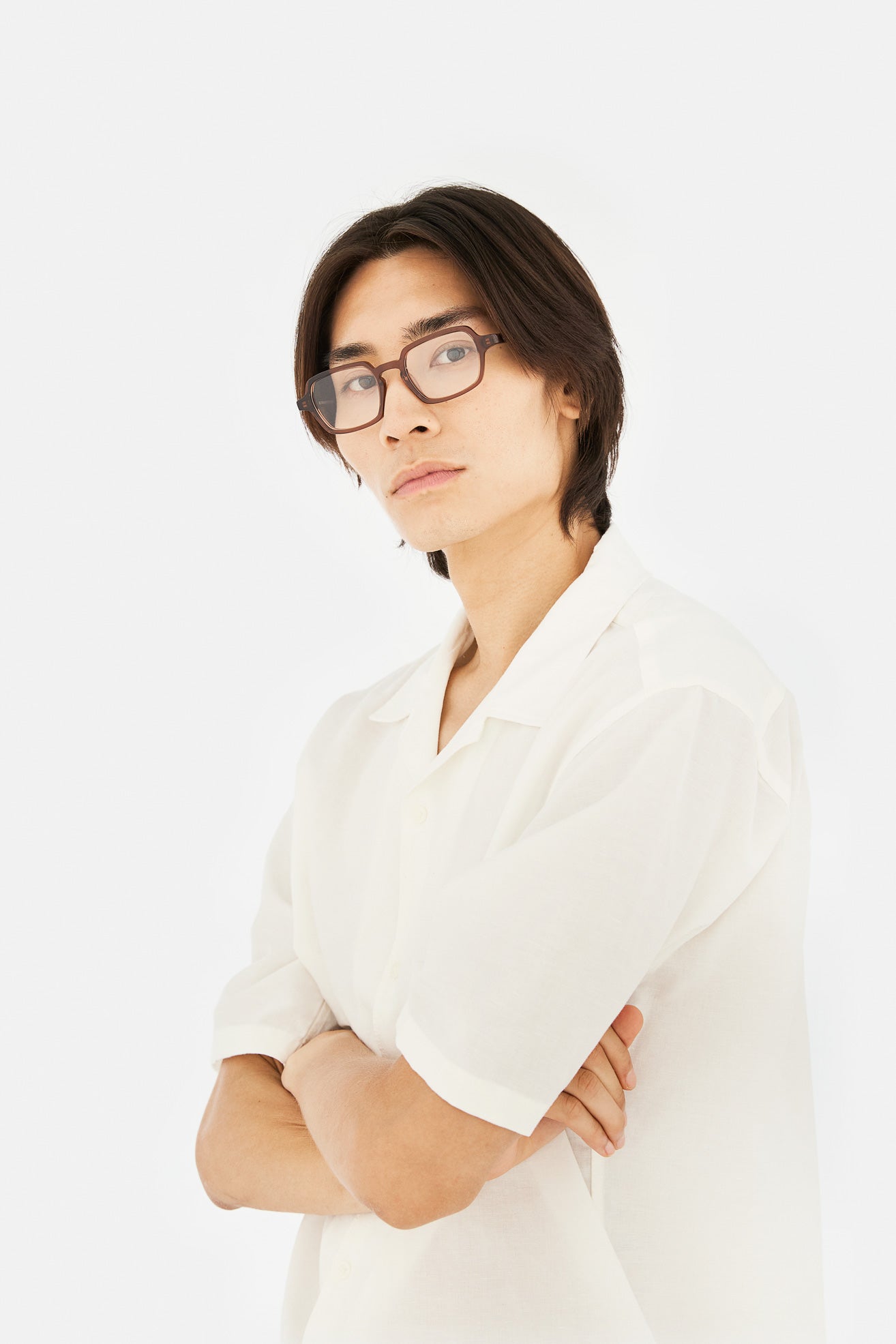 High grade Italian acetate in a chocolate brown acetate. Mounting clear display lenses in base 4. Prescription lens not included. Premium eyewear designed in Milano, Italy.