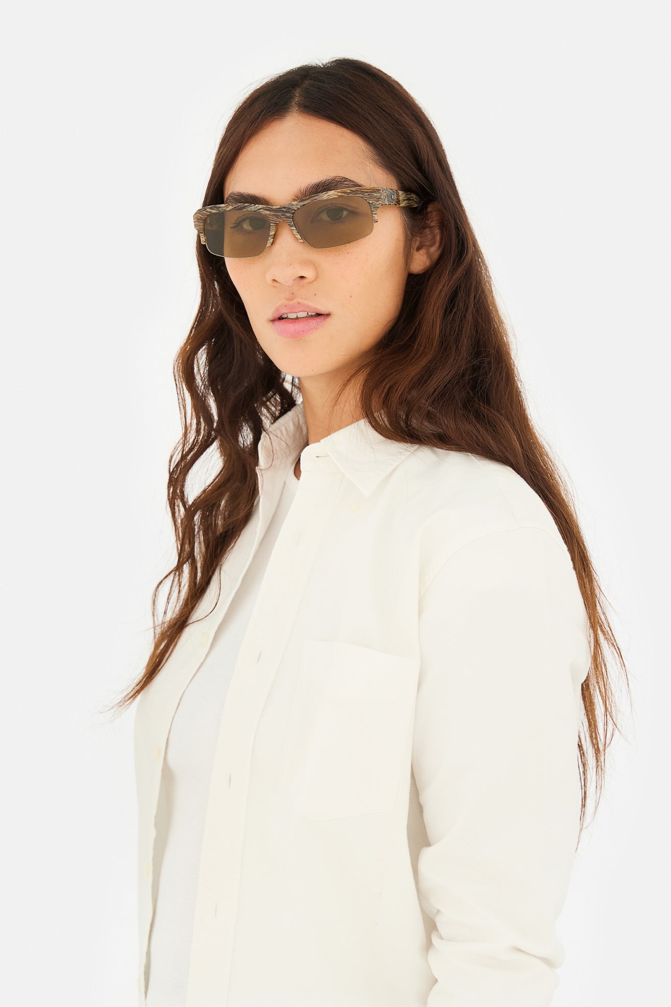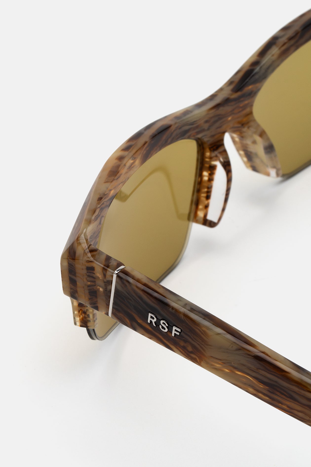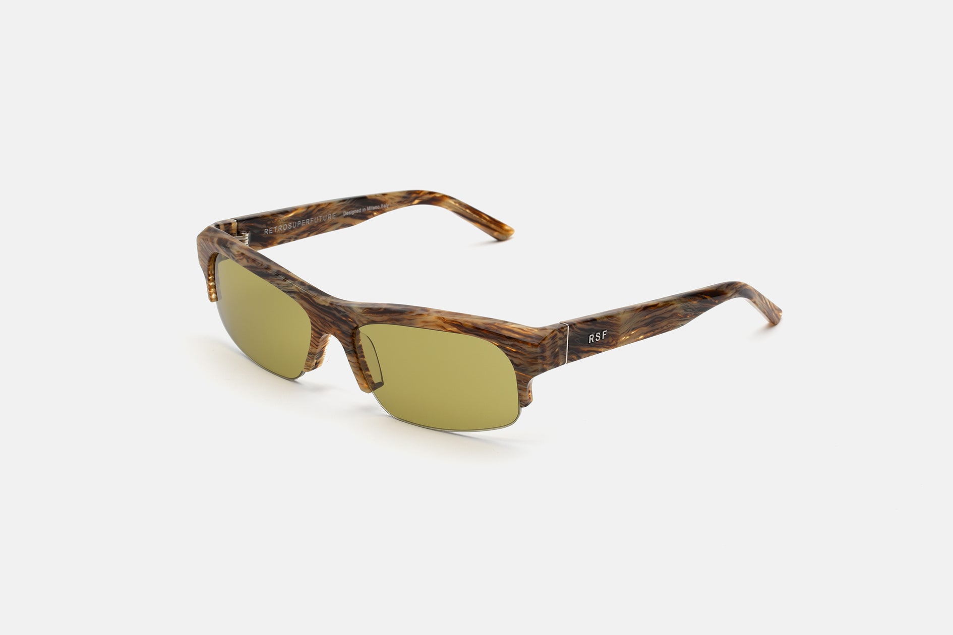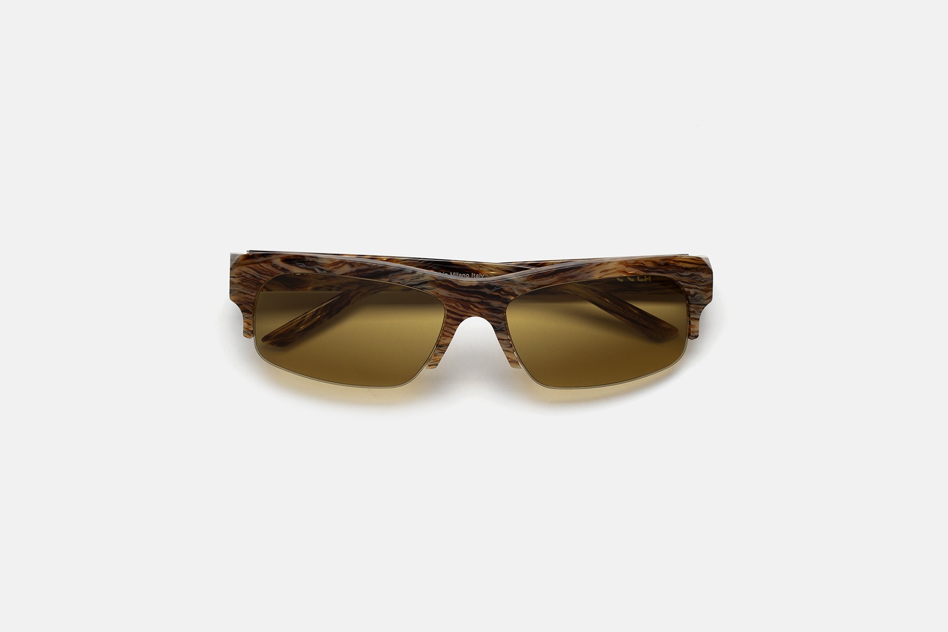 High grade acetate in a unique scratched tortoise shell pattern acetate. Mounting vintage brown lenses by Zeiss in base 6. Premium eyewear designed in Milano, Italy.