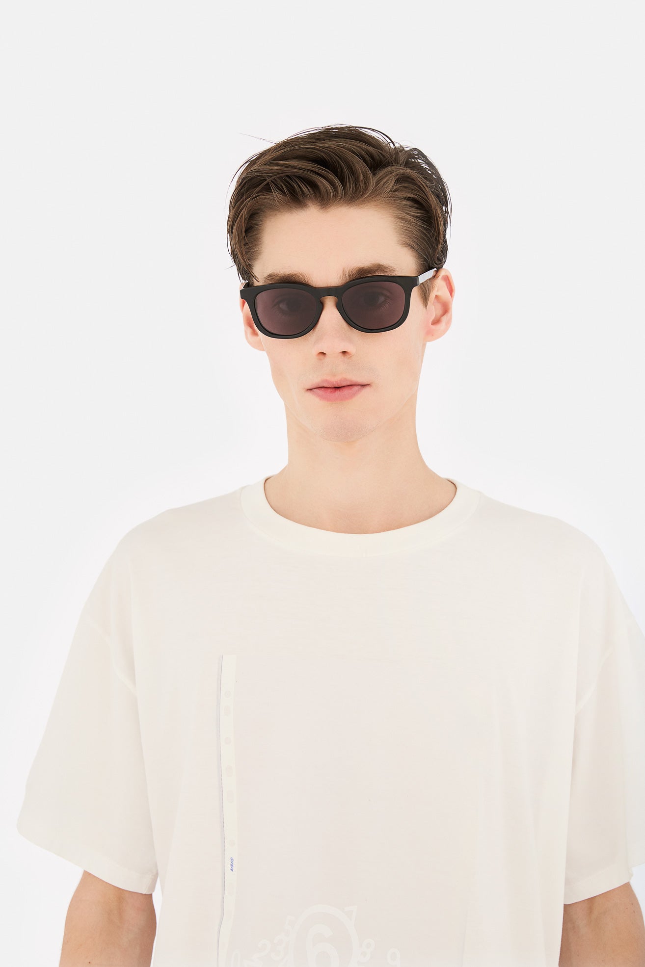 MM6 Maison Margiela expands into eyewear with its first dedicated collection. Margiela’s collections naturally tend to de-contextualize and de-construct, while still maintaining the specific shape and functionality of the product itself. Instead of following trends, the Maison's style prefers to draw on great classics and rework them with a contemporary, if not directly futuristic touch.